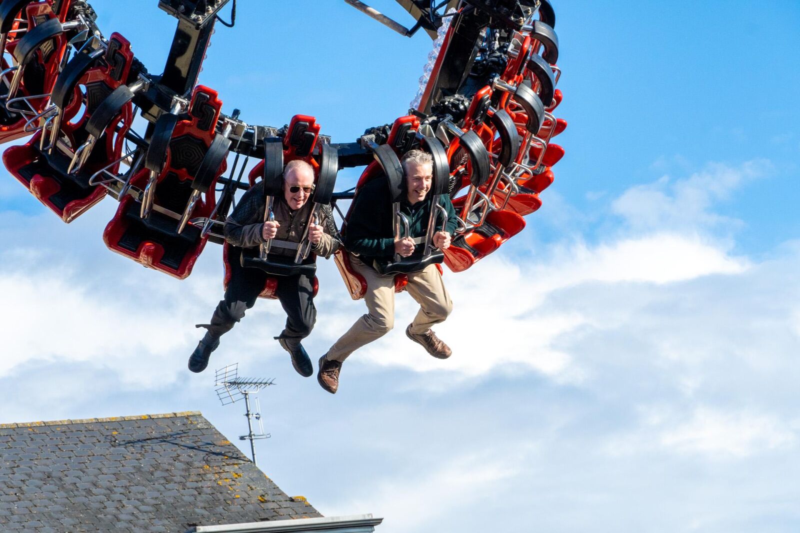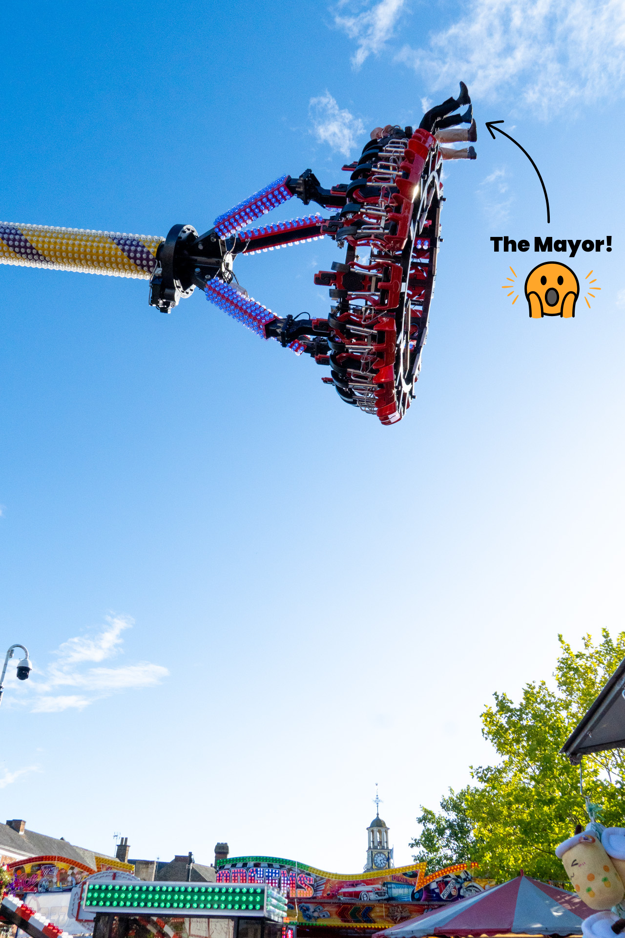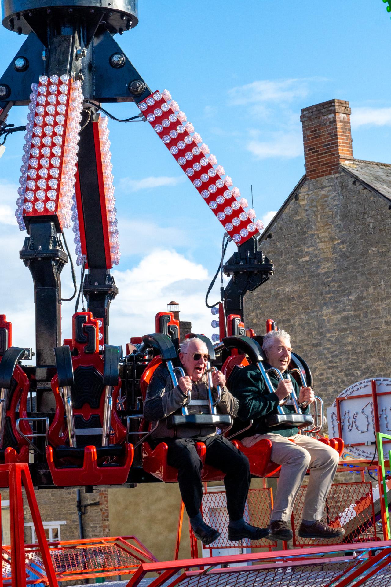 He then invited the Mayor to try out the brand new and biggest ride at the fair, The Venom. Cllr Tiller, rising to the challenge, accepted and became the first in Brackley to experience the attraction. He was joined by Andy Green from Banbury FM, who later interviewed both Tommy Wilson and the Mayor about the occasion.